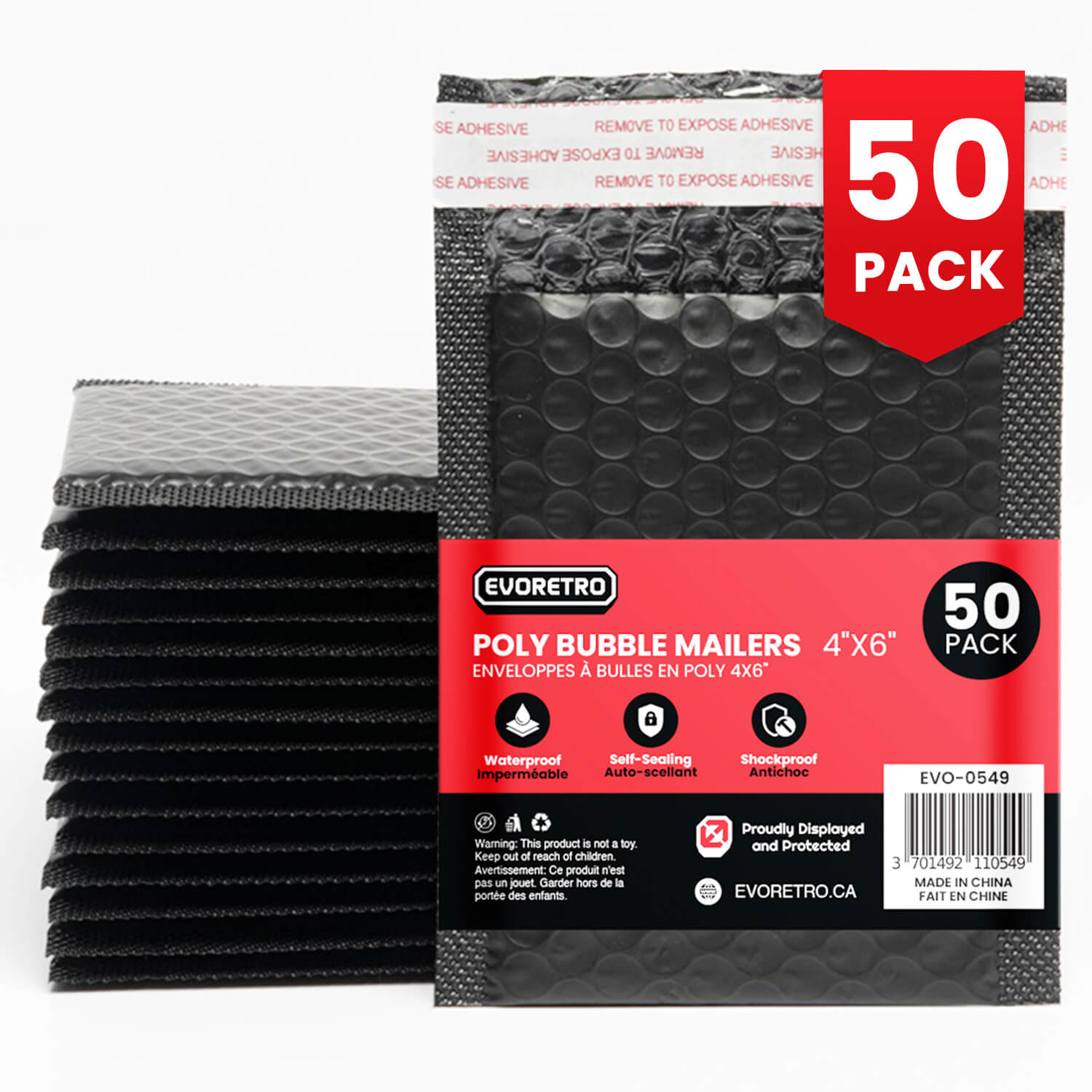 50x EVORETRO Poly Bubble Mailers 4x6" – Black Protective Shipping Envelopes
